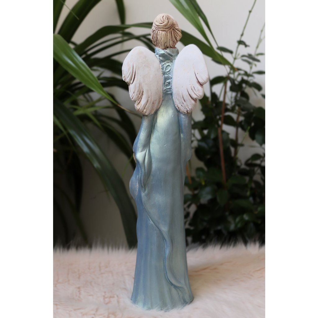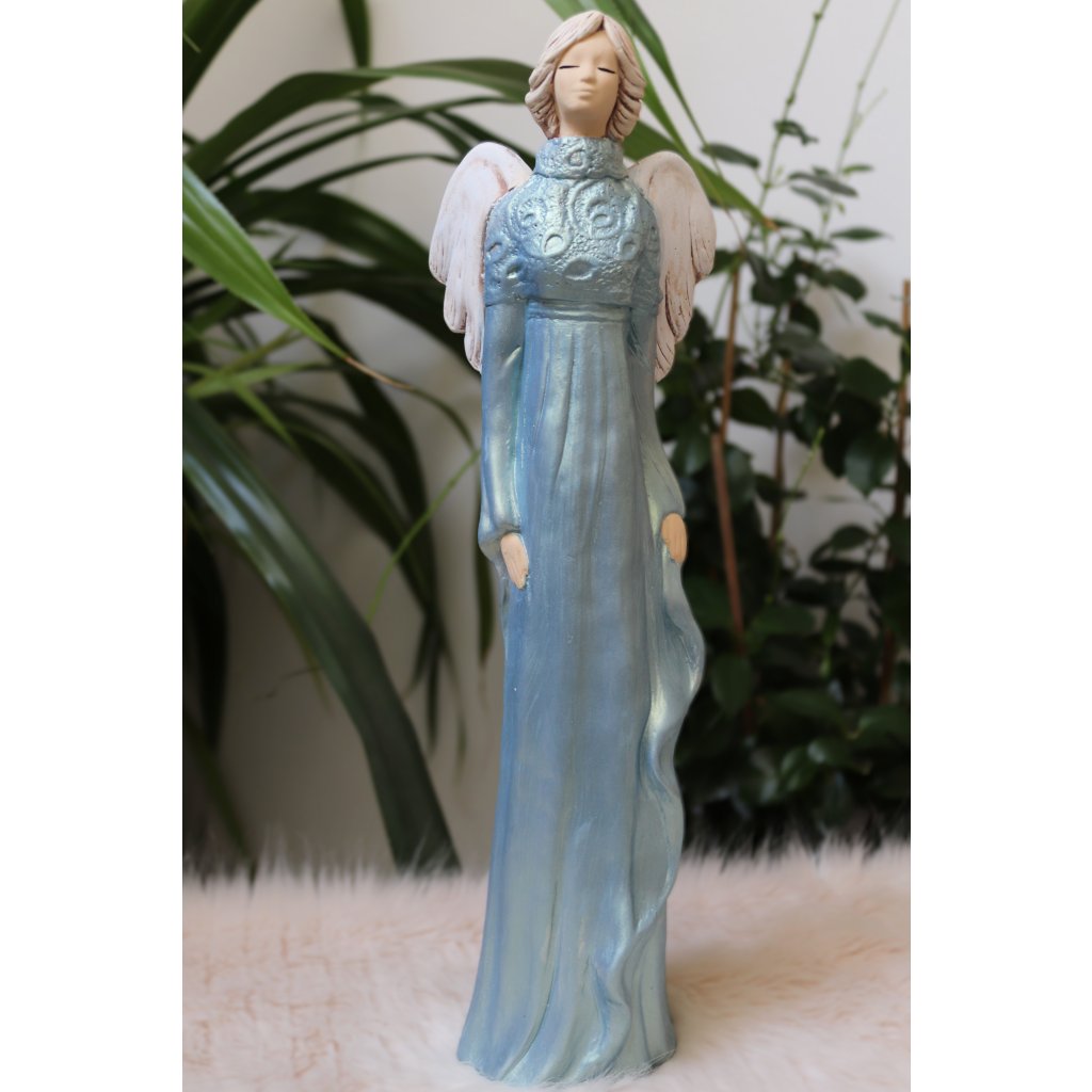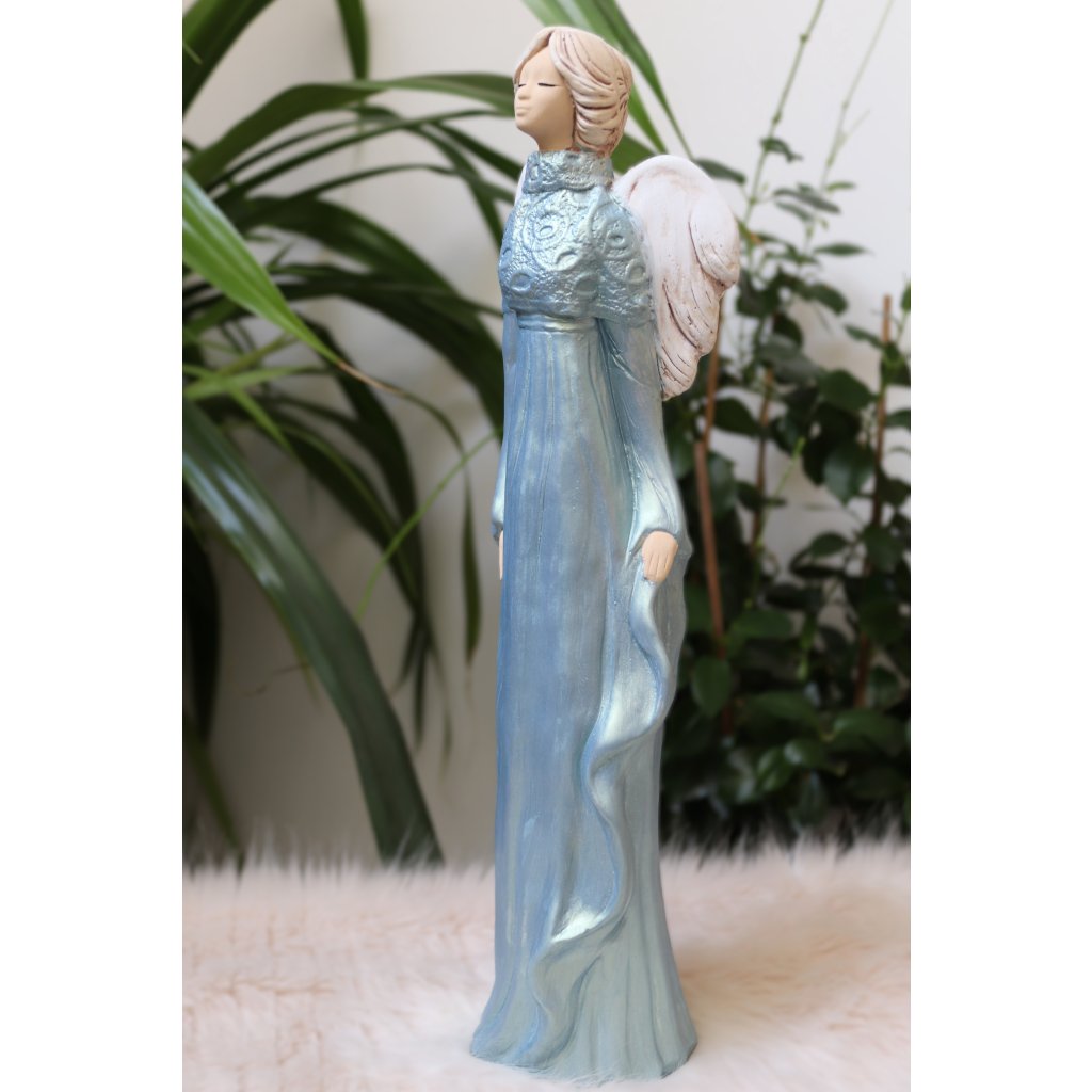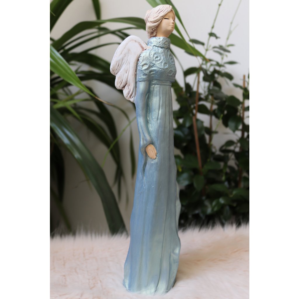 Soška nádherné andělky Amanda v modrých metalických šatech