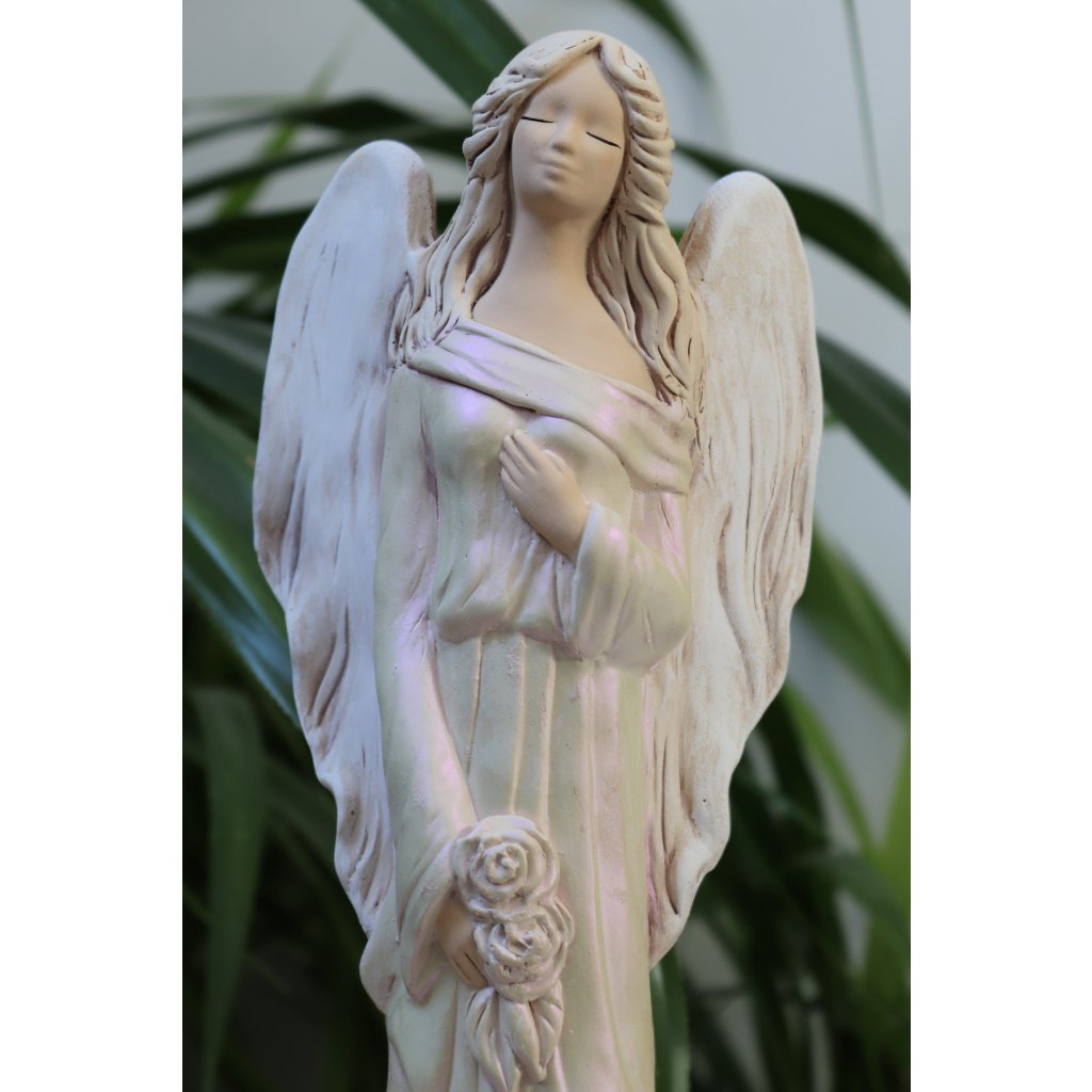 Soška nádherné andělky v světle růžových perleťově-metalických šatech s růžemi