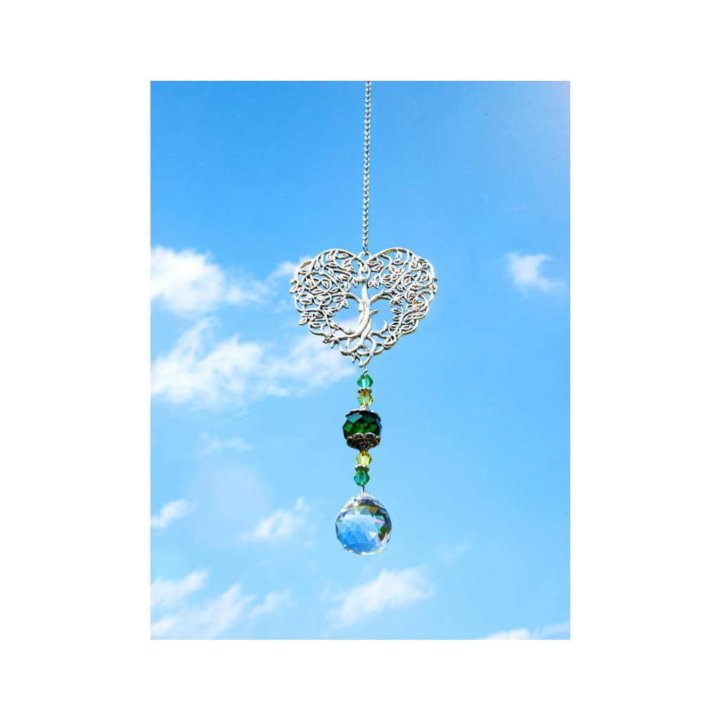 Lapač slunce je navržen tak, aby zachycoval sluneční světlo a rozptyloval ho do třpytivých barev po celé místnosti. Symbol stromu života dodává tomuto doplňku hlubší význam – podporuje vnitřní sílu, harmonii a pocit bezpečí.